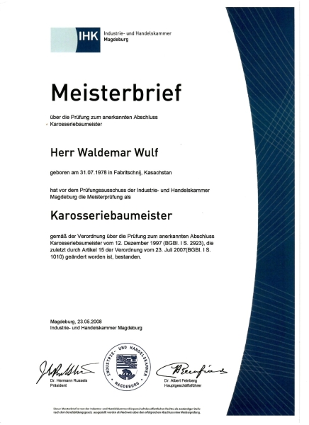 Berufsbezeichnung: Kfz-Sachverständiger / Kfz-Gutachter